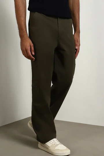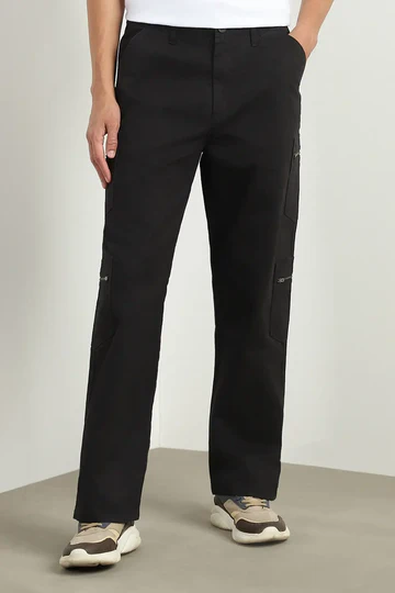 Straight Fit Zipper Woven Cargo Pants